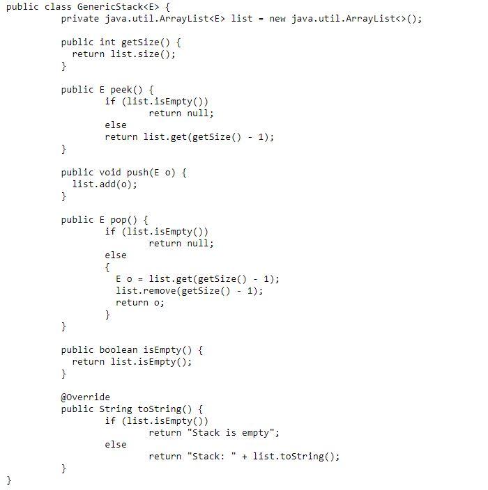 Java Program The Source Code For Stack Class Is Given Chegg Com